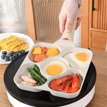 Five-Hole Non-Stick Frying Pan with Wooden Handle – Perfect for Omelettes, Pancakes, Eggs & More
