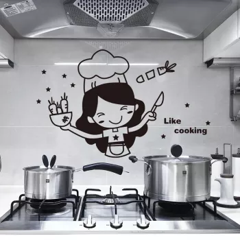 Cartoon Chef Kitchen Wall Sticker – Fun Self-Adhesive Mural for Home & Restaurant Decor