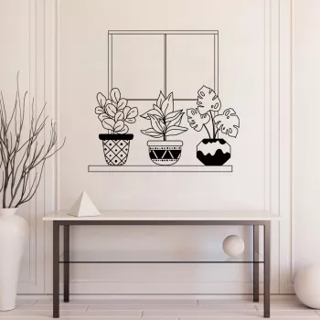 Creative Potted Plant Line Art Wall Stickers – Minimalist Home Décor