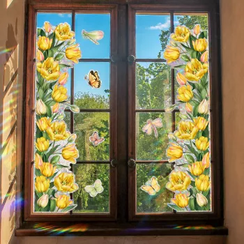 3D Yellow Flower Stained Glass Window Film – Static Cling Sun Catcher Decor