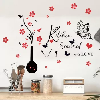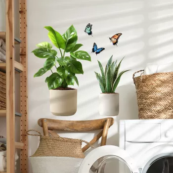 Watercolor Potted Plants & Butterflies Wall Decals for Kitchen and Home Decoration
