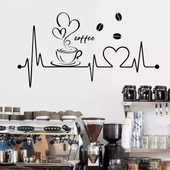 Heartbeat Signal Coffee Pattern Wall Sticker – Stylish Kitchen Decor