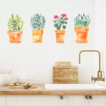 Watercolor Flowers Potted Plant Wall Stickers – Set of 4 Decorative Decals